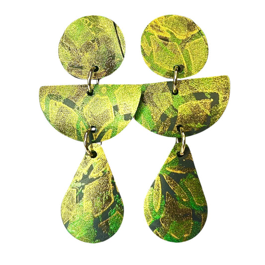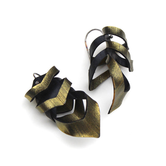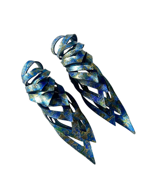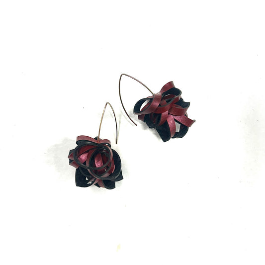 Medium Abstract Leaf Shape Inner tube Statement Earring with Recycled Sterling SIlver Hooks