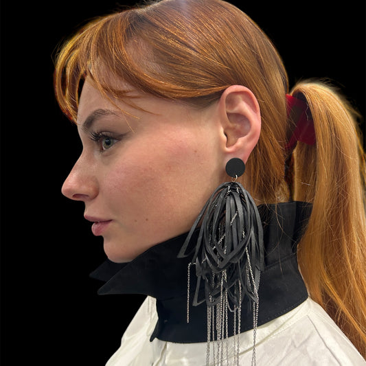 Upcycled Rubber Bicycle Inner Tube - Mega Long Feather Style Earrings