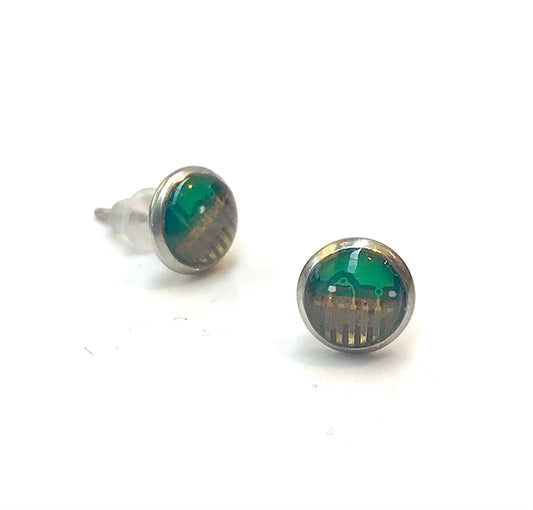 Upcycled Bicycle inner tube set in stainless steel stud earring